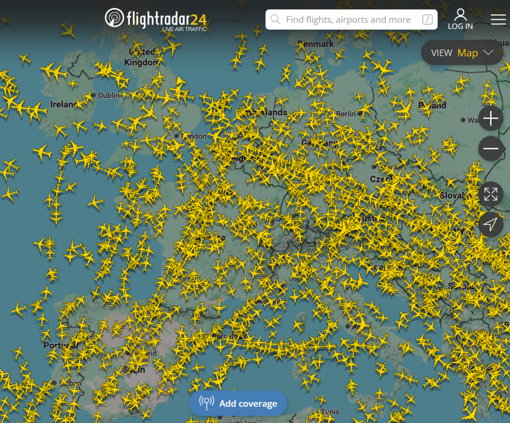 Flightradar24 est probablement le service de suivi aérien le plus connu au monde. Il affiche des milliers d’avions en vol grâce aux données ADS-B transmises par les appareils.