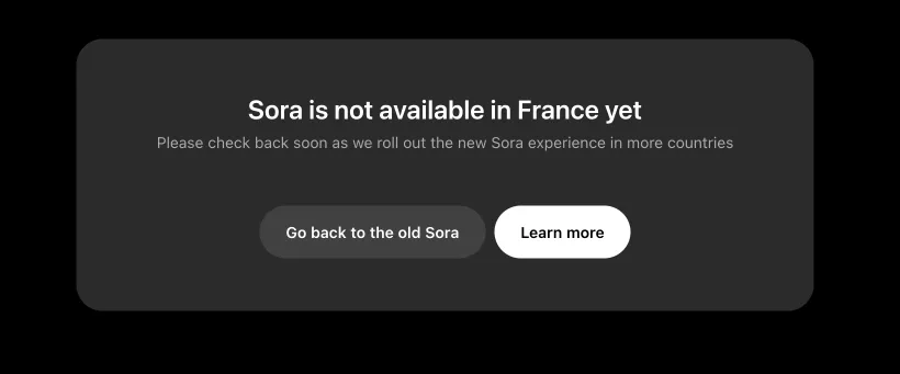 L’une des raisons principales de l’indisponibilité de Sora 2 en France concerne la géo-restriction. En tentant de s’inscrire depuis la France, beaucoup voient un message d’erreur ou un refus d’accès.
