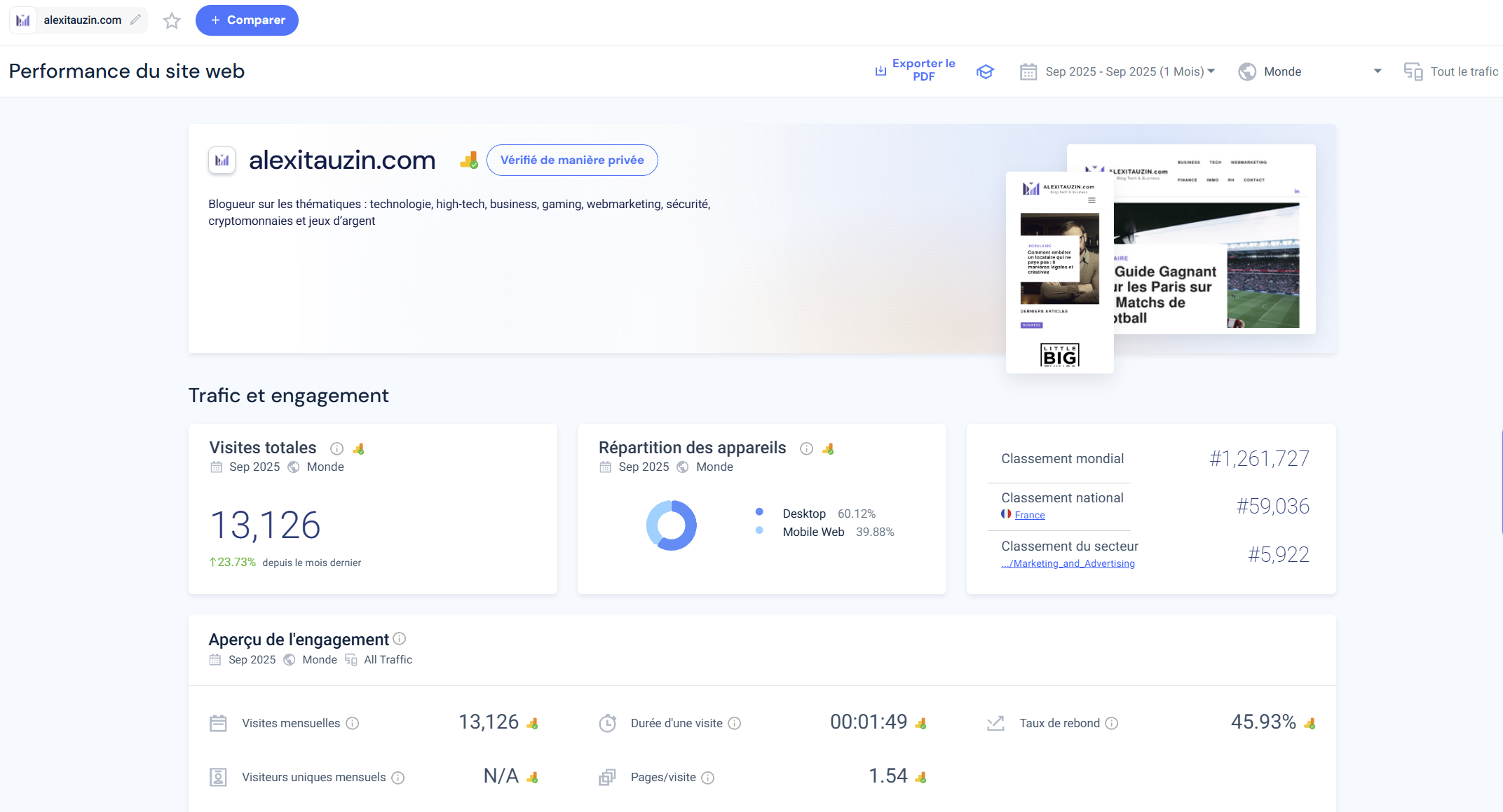 En 2025, le site continue de grandir grâce à une audience régulière de plus de 10 000 visiteurs par mois en France.