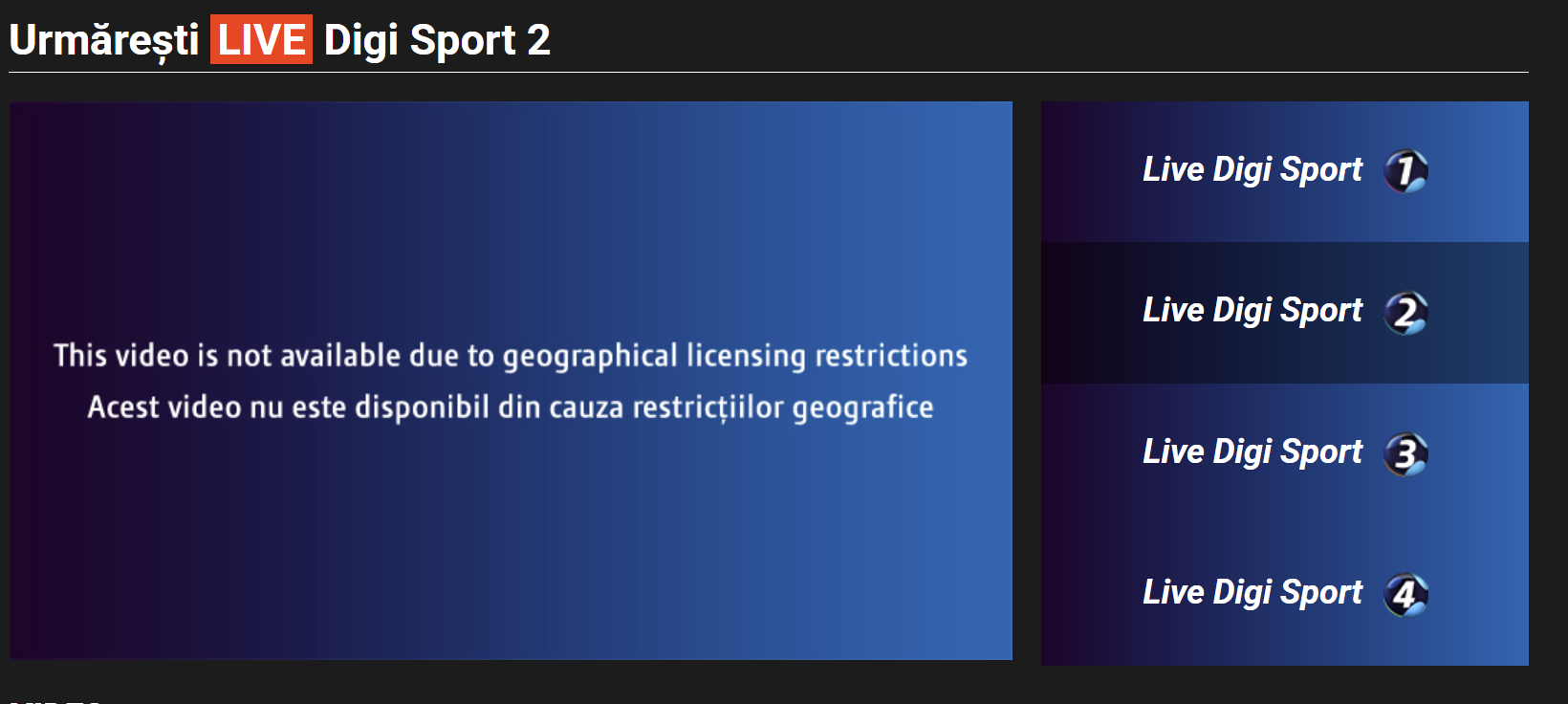 Les chaînes comme Digi Sport 2 (Roumanie) achètent les droits de diffusion uniquement pour leur territoire. Si vous essayez d’y accéder avec une connexion française, un écran noir s’affichera (“Ce contenu n’est pas disponible dans votre région”).